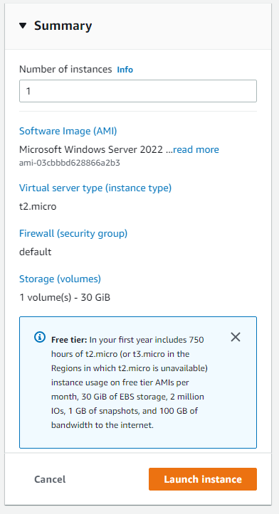 Name the instance and choose one of the application and OS Images. I will choose Windows. To make sure you don't have, double-check if it is Free tier eligible.