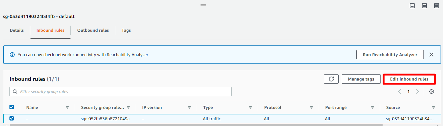 In the Security group menu, click Inbound rules. We will edit the inbound rules.