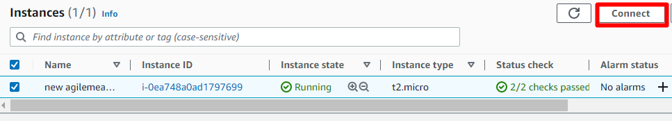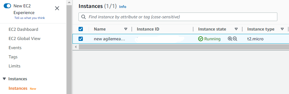 When you click the Instances tap, you will see the instance running that you just launched.