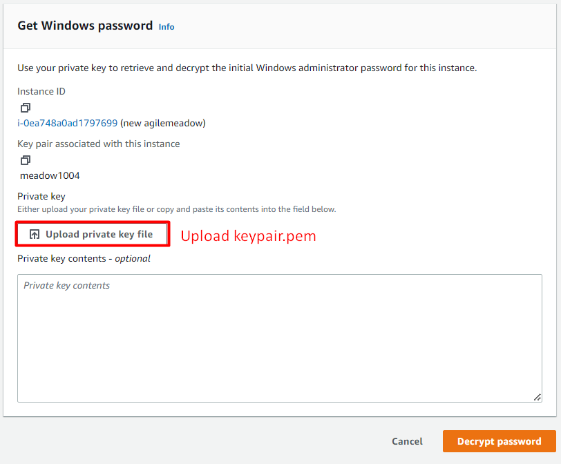 Here, you will upload the key pair that was downloaded before.