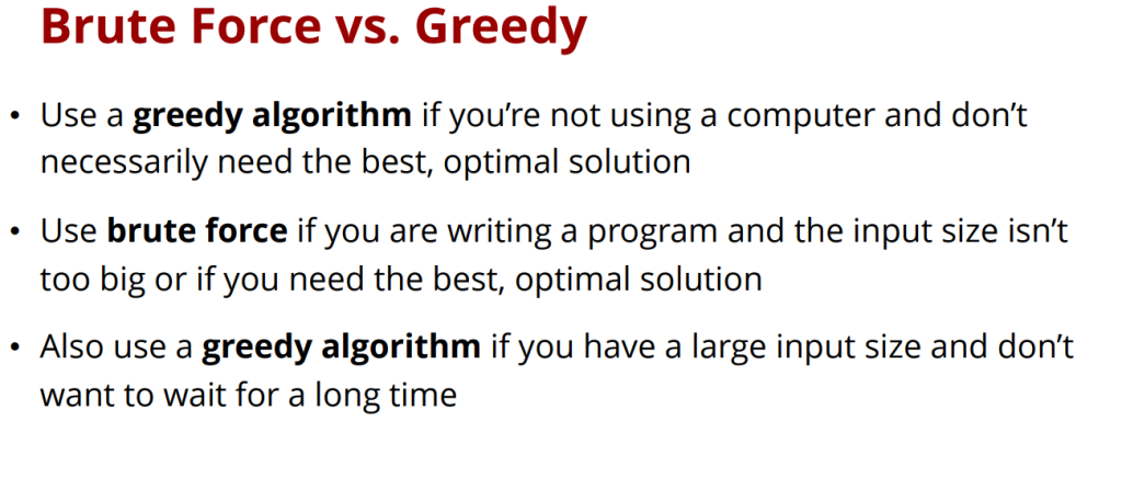 • Greedy: make a decision that seems best right now and keep repeating