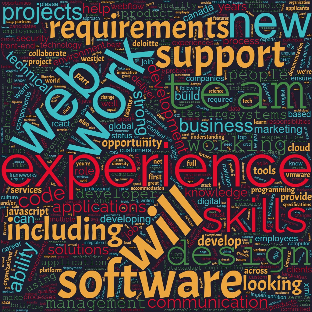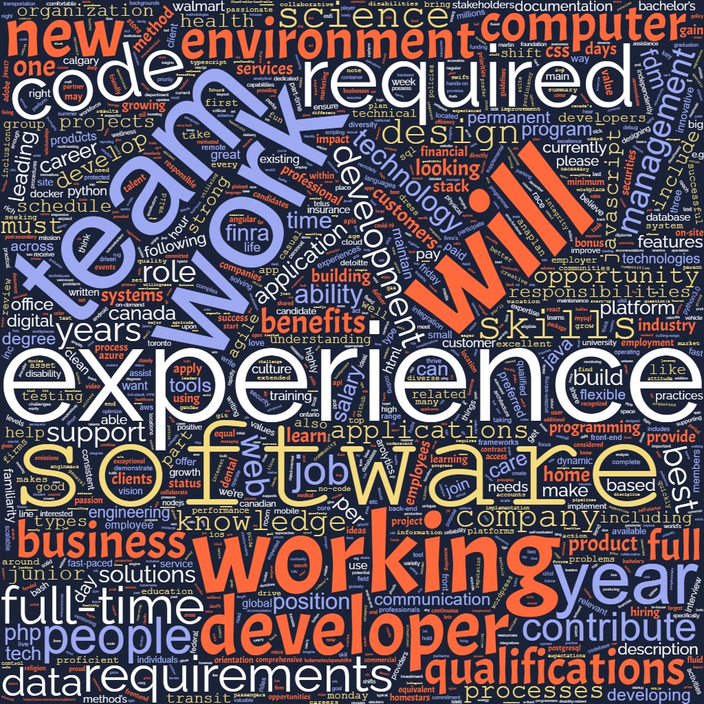 Junior developer job word cloud from indeed & LinkedIn