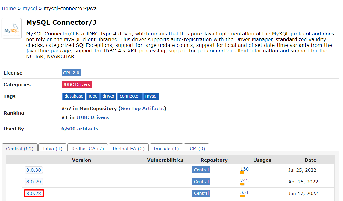 1. Maven Repository: Search/Browse/Explore (mvnrepository.com) Click the link.