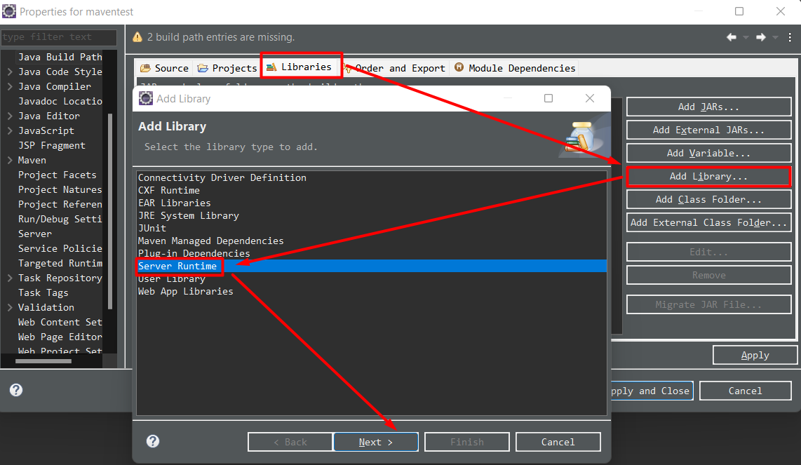 If there is an error that you can see(the red X sign), you can erase that by adding Apache Tomcat v9.0.