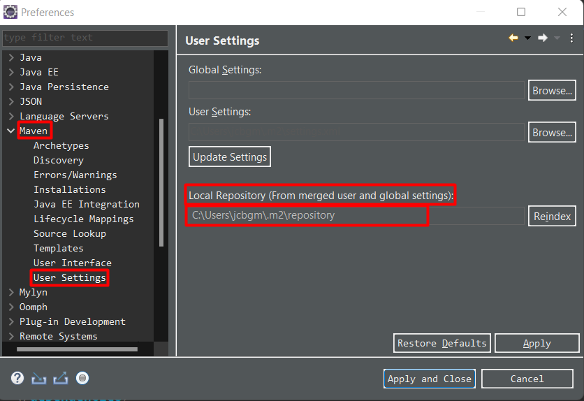 To check your local repository, click window-Preferences- Maven - User Settings.