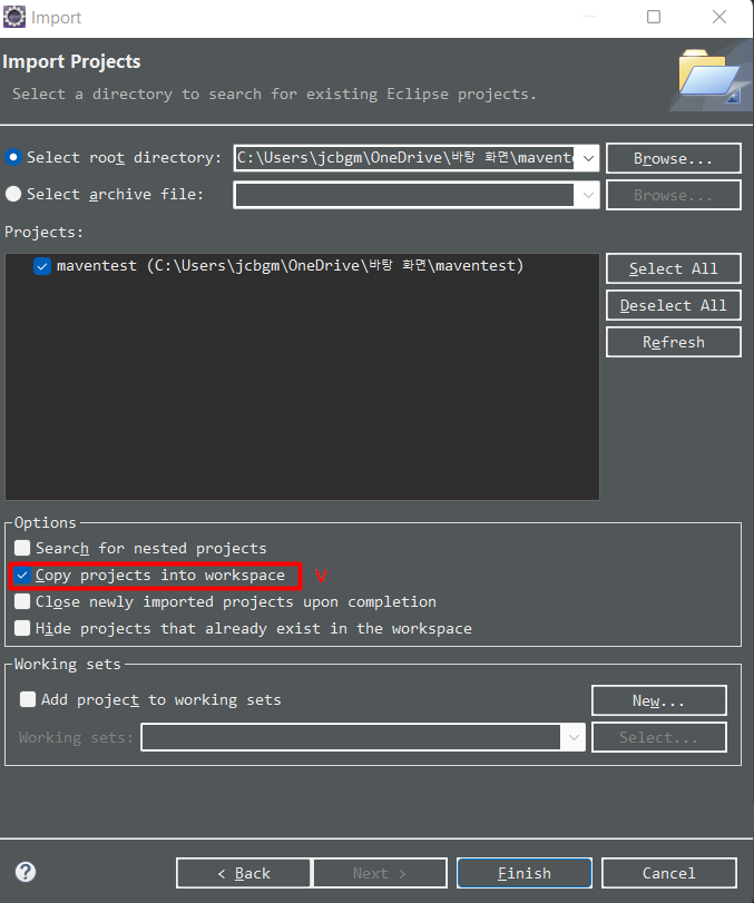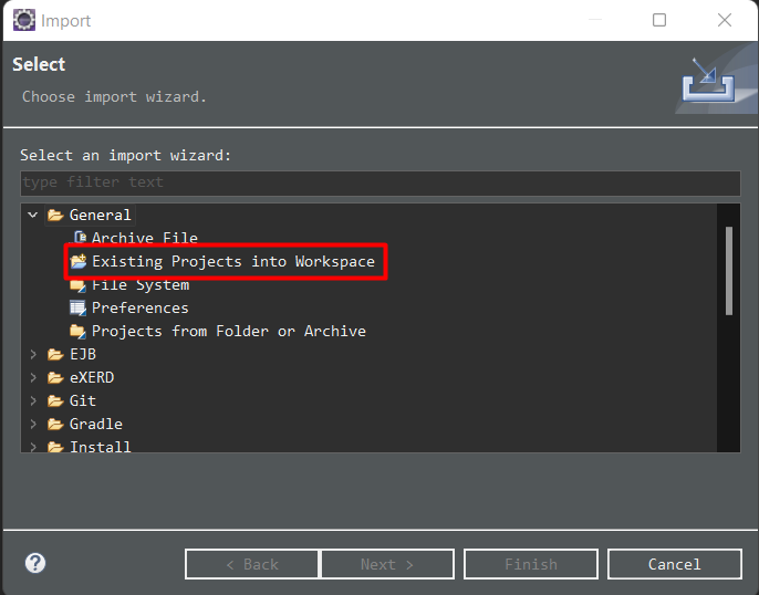 To export and import the maven projects is also different from how we did before. Exporting and importing it as a WAR file will be saved as a dynamic web project. To export the Maven project, you will copy the whole project and paste it to the place you want. This is different from exporting the dynamic web project, but it is easier because you don't need any skills to do this. To import, click Existing Projects into Workspace in the General menu.