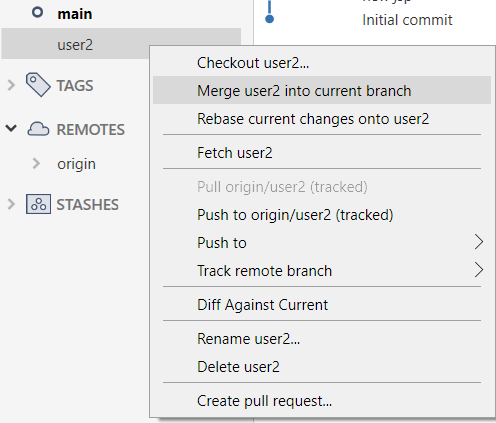 When you merge the branches first and push, it will be easier.