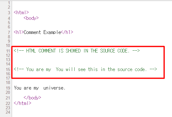 Here are some examples of them. Let's compare the comment tags with HTML too.