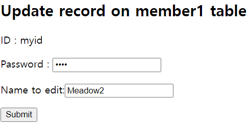 <h2>Update record on member1 table</h2>
