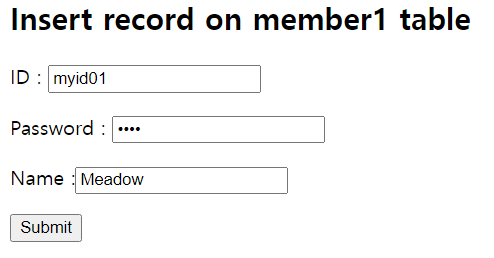 <h2>Insert record on member1 table</h2>