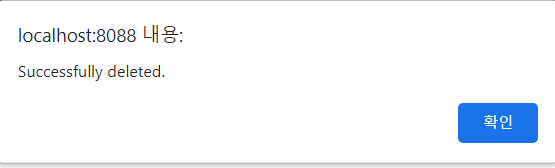 alert("Successfully deleted.");