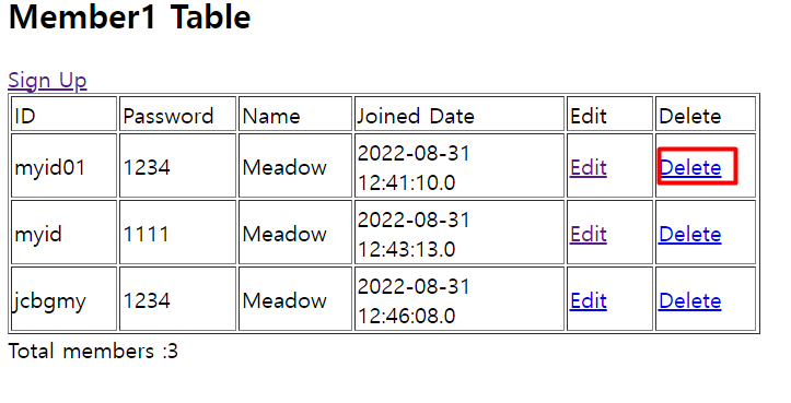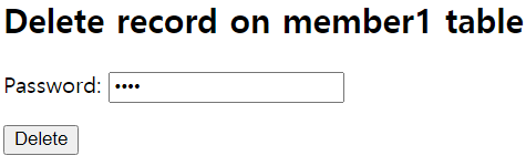<h2>Delete record on member1 table</h2>