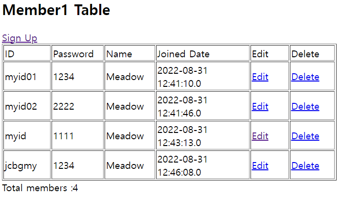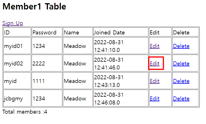<h2>Member1 Table</h2>