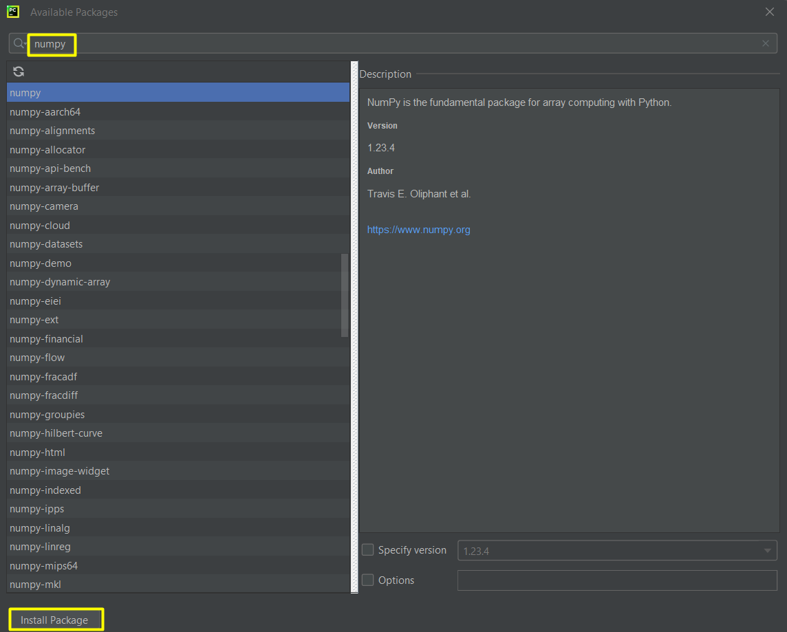 Here in Python Interpreter, you can see the libraries list. You can easily install, uninstall, or upgrade them.