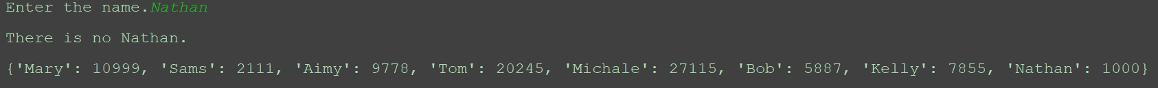 names = {'Mary':10999, 'Sams':2111, 'Aimy':9778, 'Tom':20245 , 'Michale':27115,