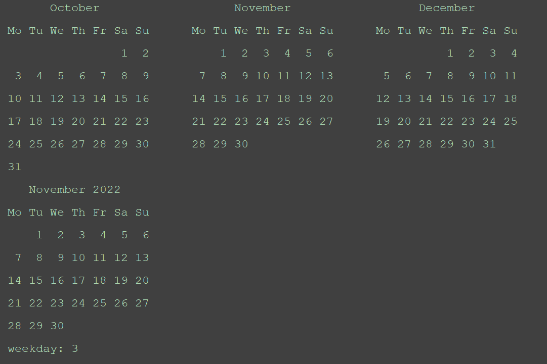 weekday = calendar.weekday(2022,11,28)