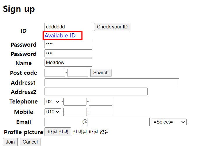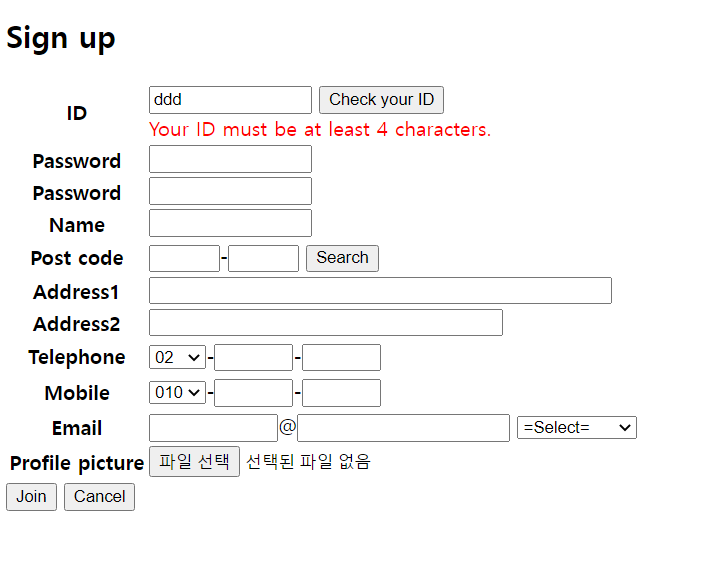 | HTML / Javascript / JSP ) Sign up Form2 (0) | 2022.08.28 |